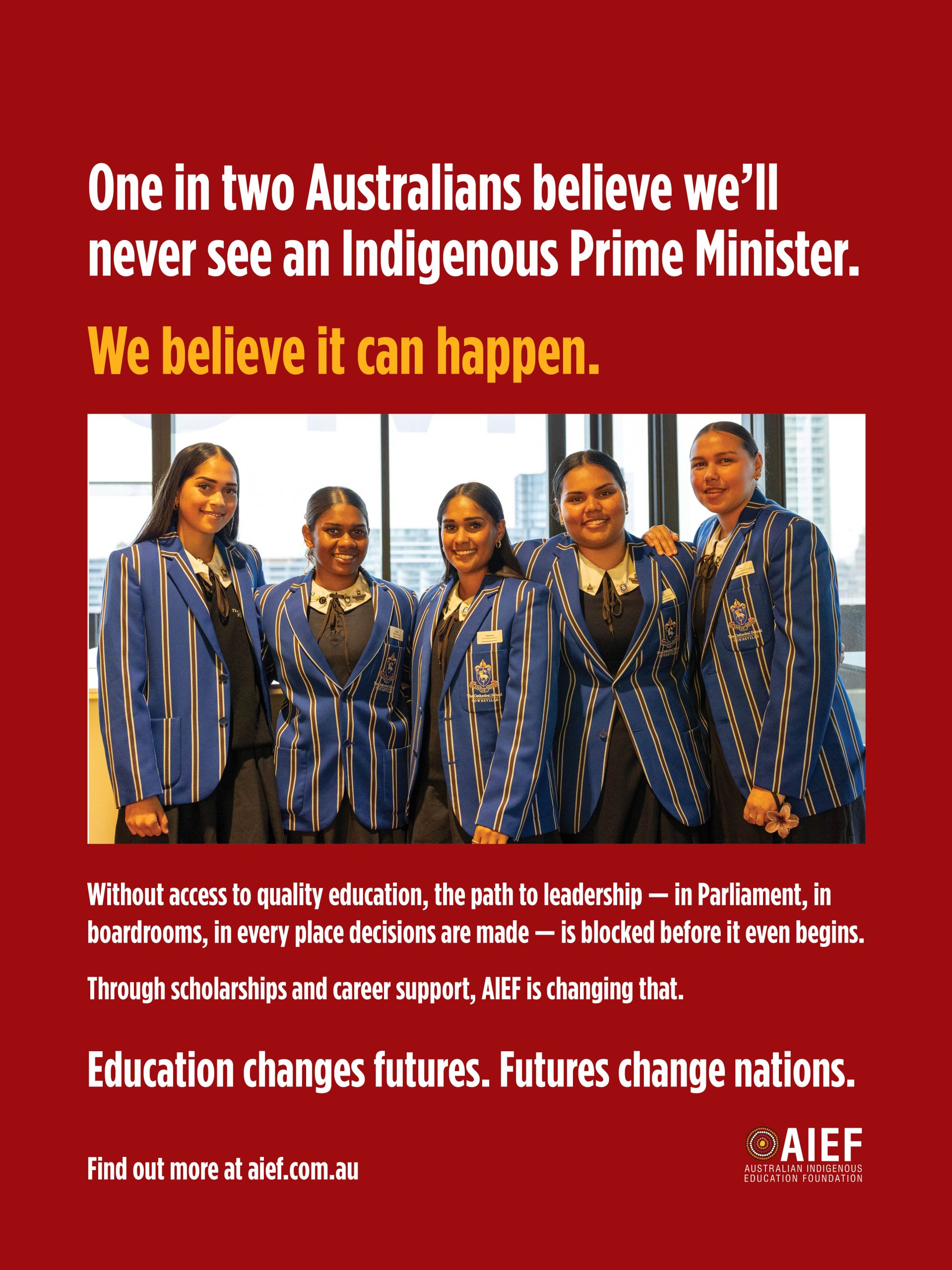 We believe it can happenOne in two Australians believe we’ll never see an Indigenous Prime Minister.We believe it can happen. February 12, 2026 8:29 am